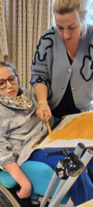 Dinsdag: We blijven samen in de klas tijdens taal. Ruth werkt een beetje met de oogbesturingscomputer maar ze heeft er niet zoveel zin in. Ondertussen leest Louis een boekje over kunst voor met behulp van een klikcontact. Zubeyr luistert mee. Hava Nur typt woordjes & zinnen op de computer. Op het einde is er nog wat tijd om vrij op de ipad te spelen.
