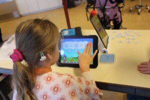 Er is nadien uiteraard ook nog een blokje/ipad voorzien. Iedereen op zijn eigen tempo en een spelletje dat aansluit bij hun interesses. Taal, sorteren, cijfers, een filmpje…